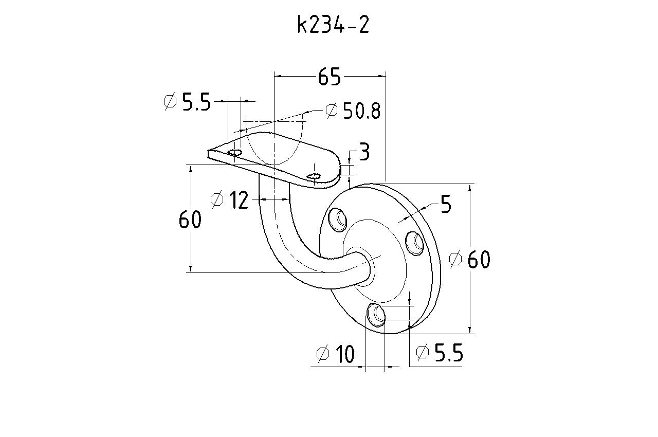 Пристенок с ложементом под Ø50.8 мм, вынос 70х45, Ø60х3 мм, литой, 25х45х2 мм, полированный, (AISI 316) k234-2