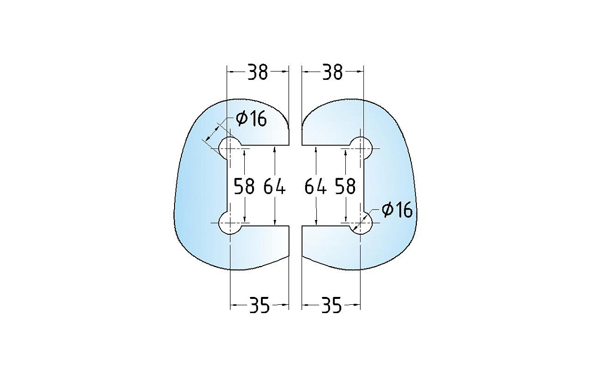 Крепление предусмотрено с двух сторон на 4 винта со шляпками заподлицо (по 2 винта на каждую сторону). Размер одной стороны петли составляет 90х55 мм.