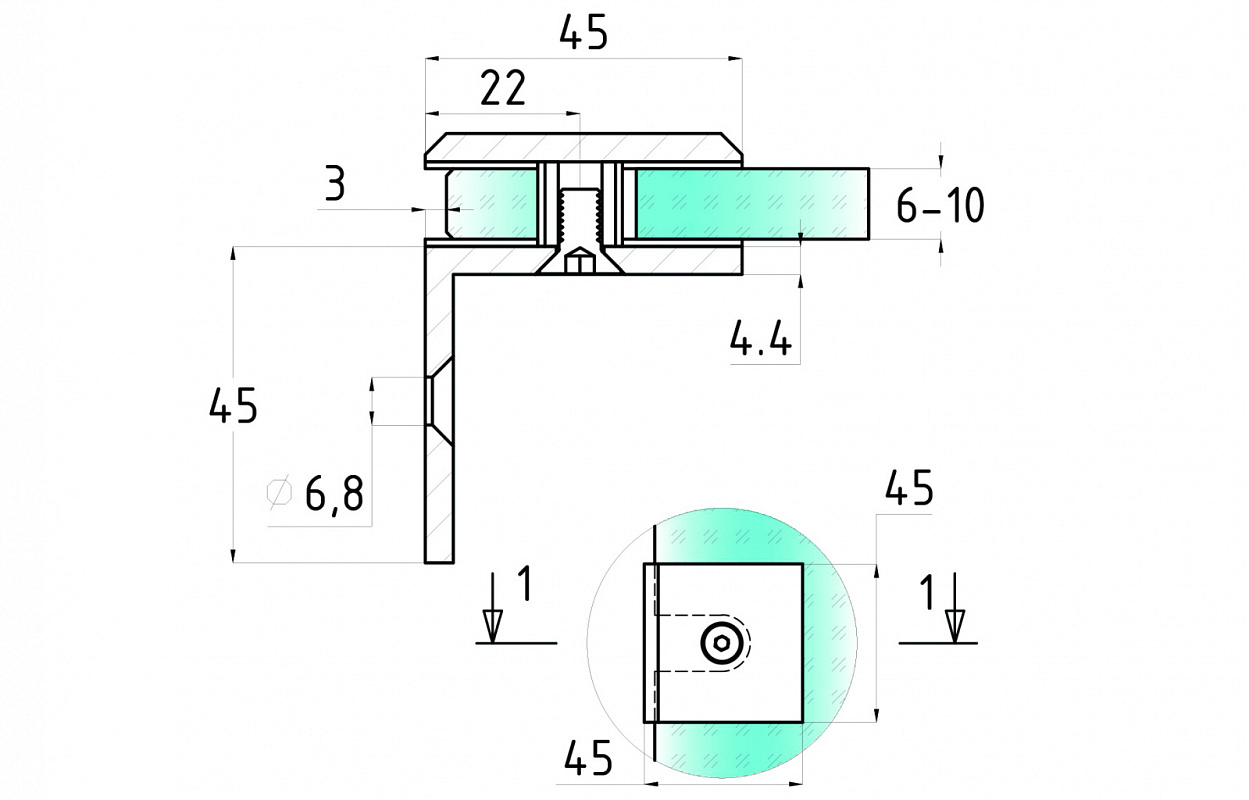 Держатель стекла сквозной, цинк-хром полированный t914 PZn