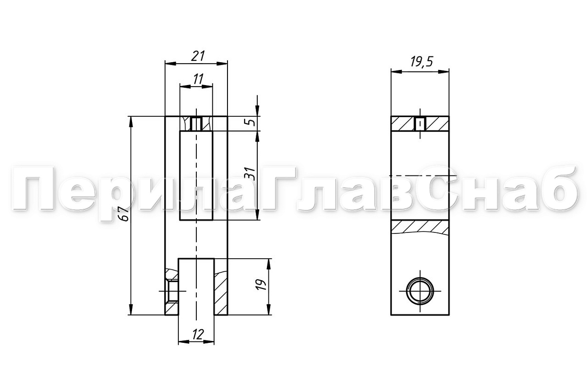 Соединитель предназначен для крепления труба 30х10 к стеклу в вертикальной ориентации при монтаже штанг верхней обвязки душевых кабин.