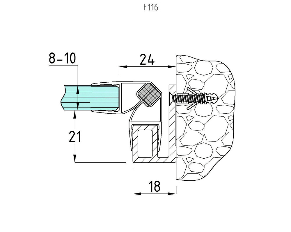 Используется в душевых перегородках в качестве опоры для установки уплотнителя