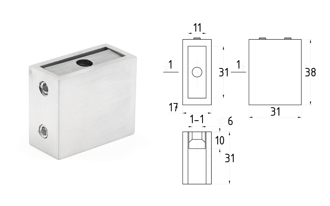 Направляющая для стеклянной двери, нержавеющая сталь AISI 304, шлифованная t834 SSS