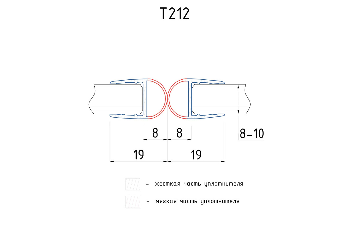 Уплотнитель для стекла в душевую кабину 8 мм, дверь-стекло 2200 мм t212