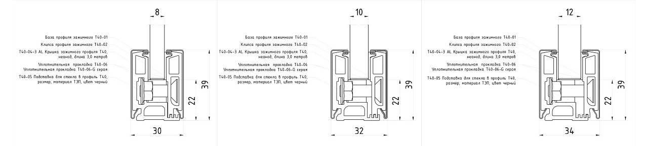 т40-12-30 SSS торцевая заглушка и т40-05 подставка для стекла в профиль заказывается отдельно.