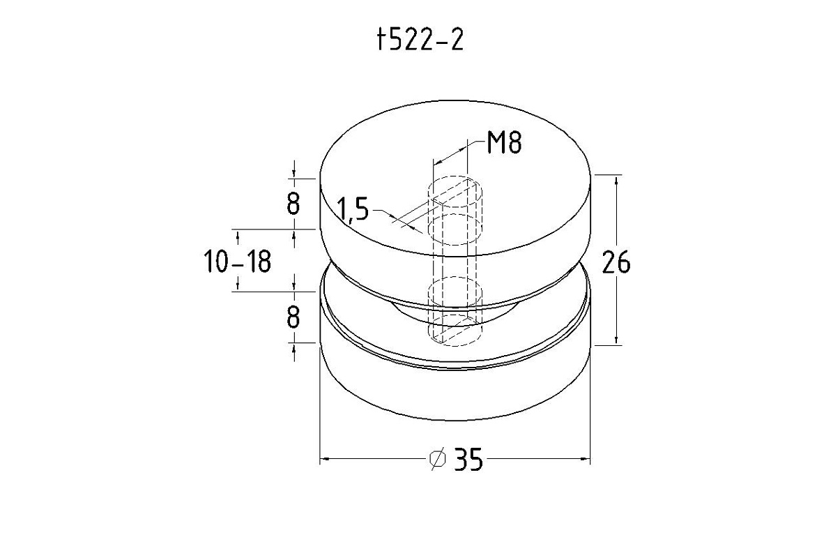 Коннектор для соединения стекол без вырезов (комплект 2 шпильки: 22мм и 28мм), под стекло 10-18 мм, шлифованная t522-2 SSS