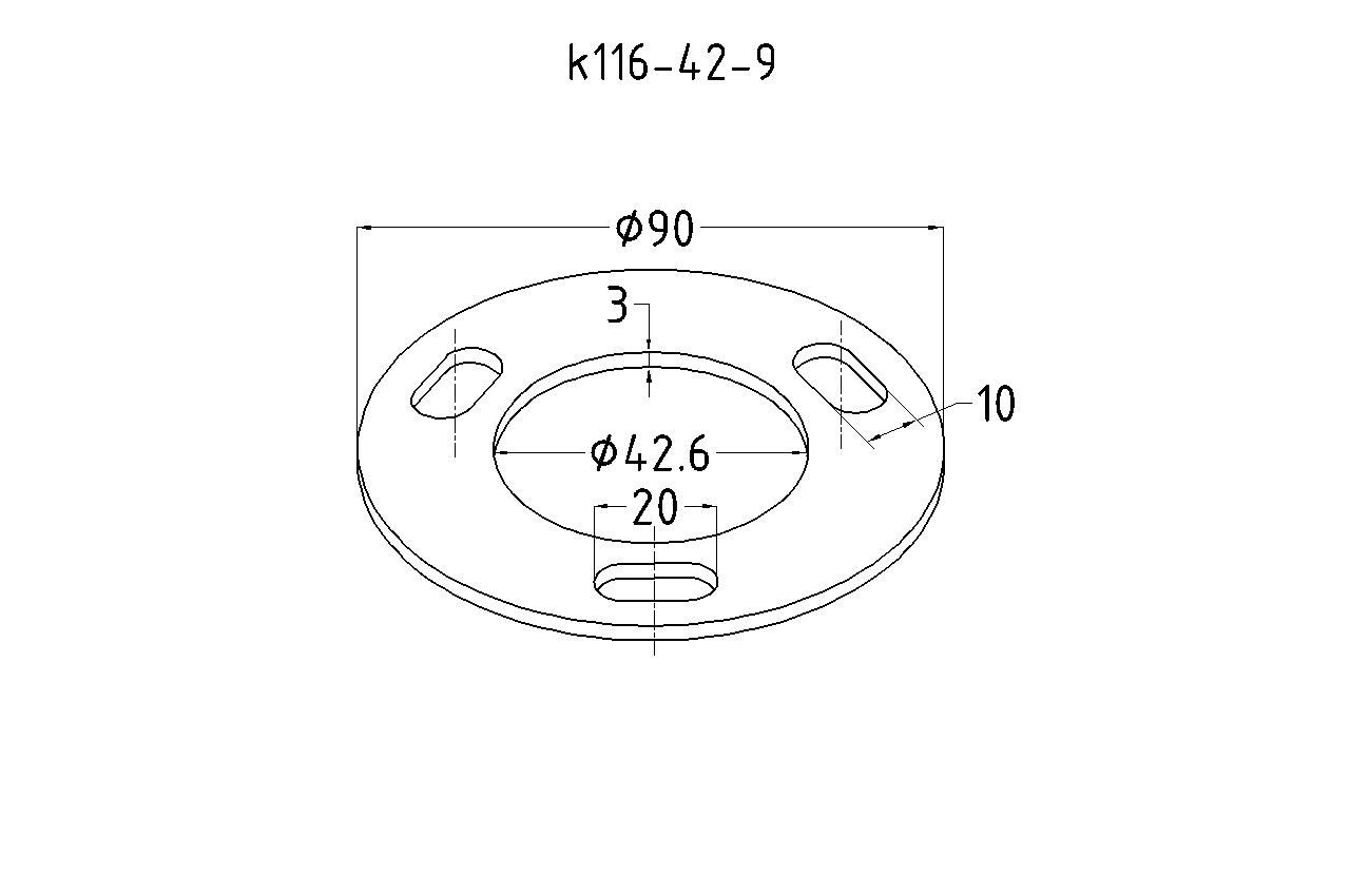 Фланец стойки 42/90 х 5 (4,3) х AISI 316 #200 3 отв х М10 х 20 k116-42-6