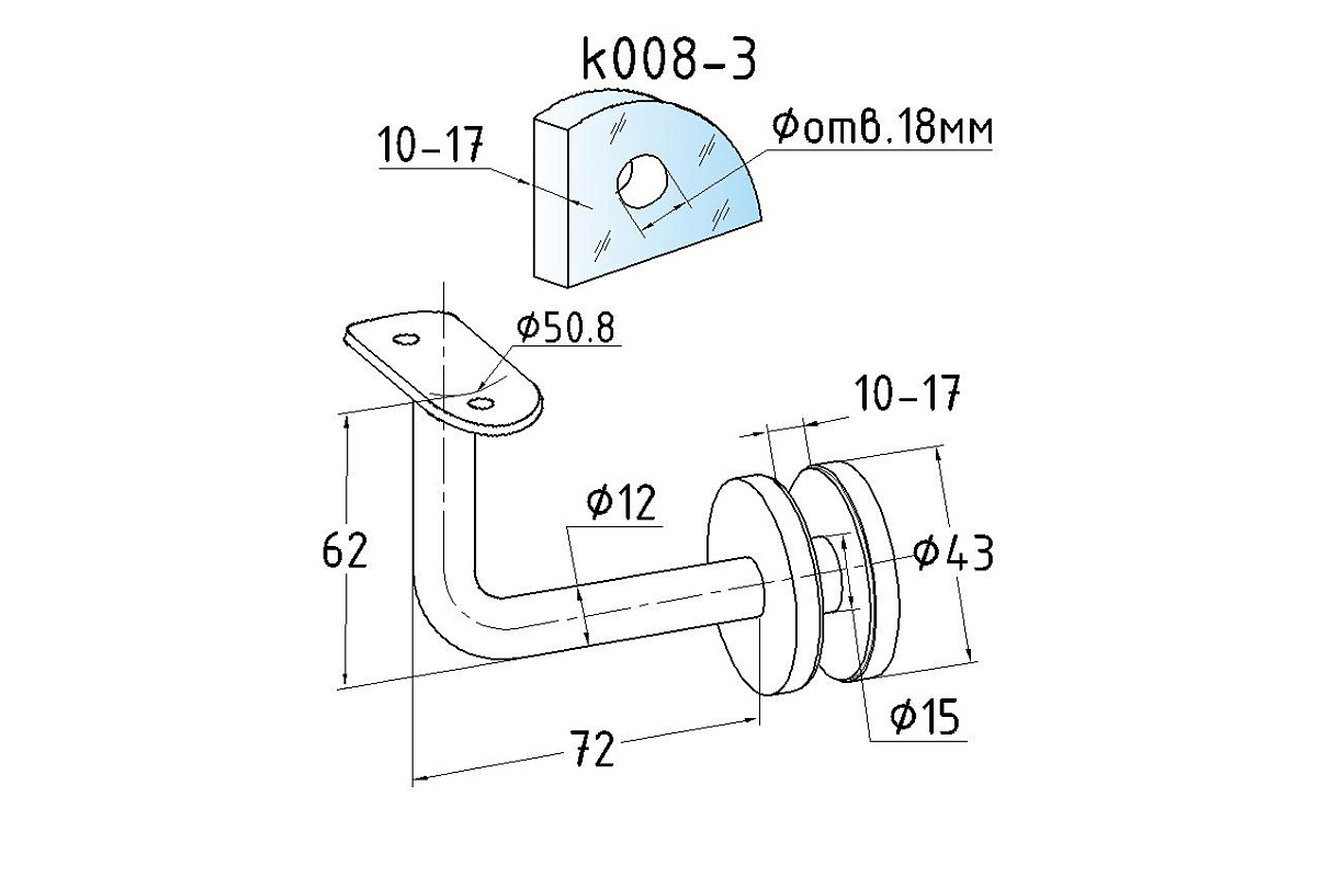 Держатель поручня на стекло 10-17 мм, полированный (AISI 304) k008 купить в Новосибирске
