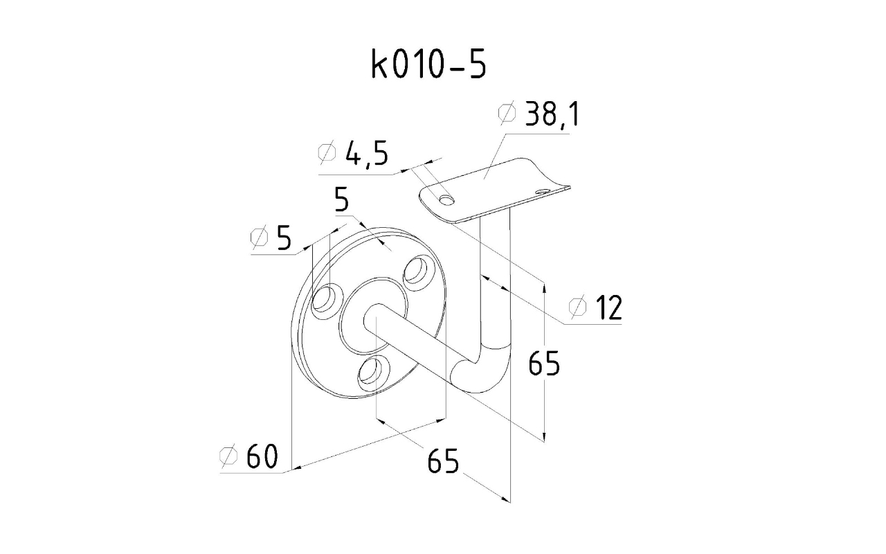 Кронштейн для перил к стене без ложемента, Ø60х3 мм k009-4