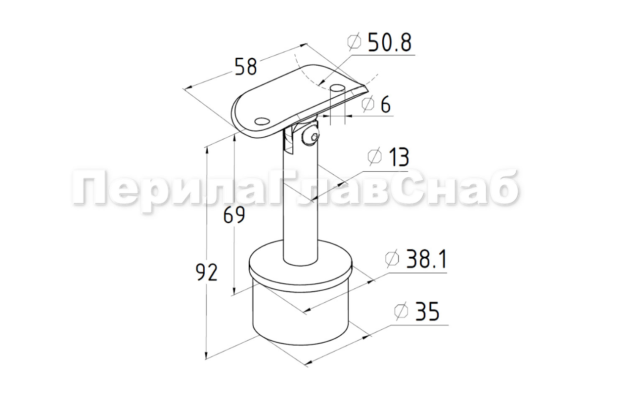 Вставляется в стойку диаметром Ø38.1 мм под поручень Ø50.8 мм.