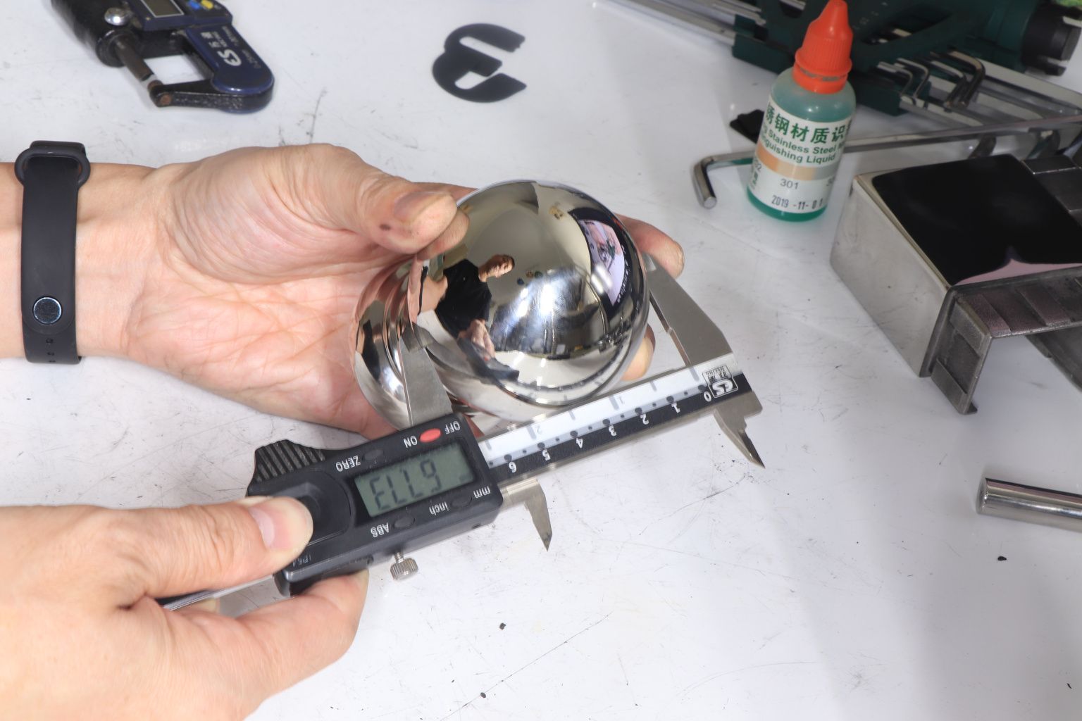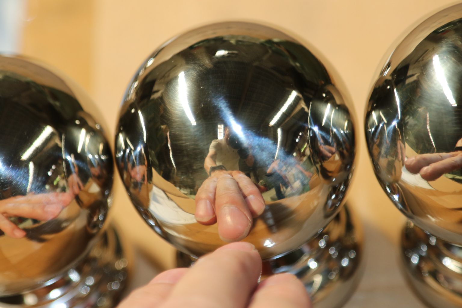 Наконечник шар на стойку диаметром 38.1 мм. Деталь штампованная, полированная, 400 Grit. Материал детали - AISI 201