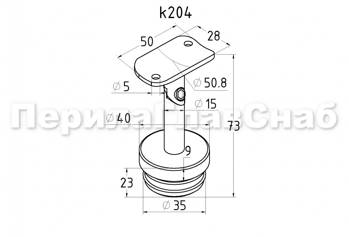 Наконечник палец с алюминиевой системой фиксации на стойке Ø38.1х1.5 мм, регулируемым ложементом под поручень Ø50.8 мм, полированный, литой, нержавеющий (AISI 304) k204