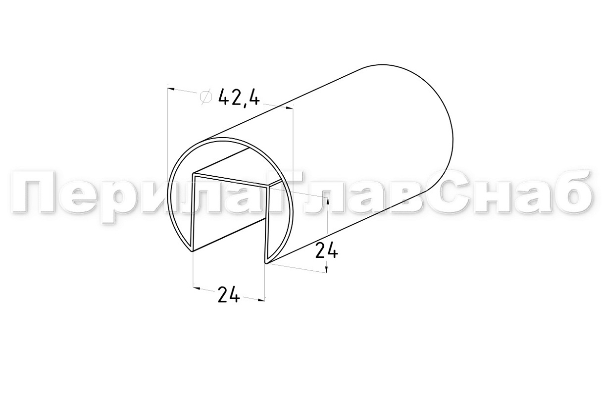 Труба Ø42.4 мм, с пазом 24х24 мм, анодированный алюминий