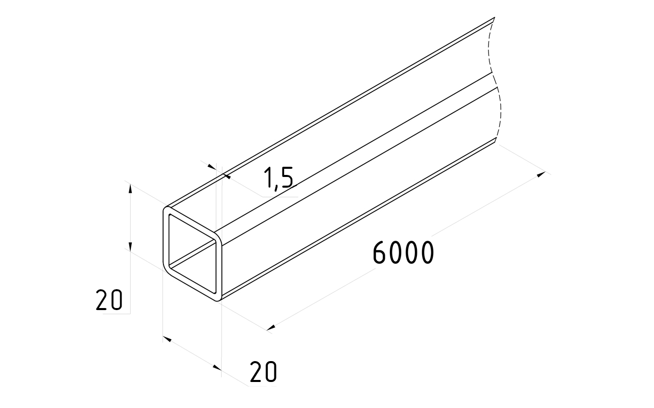 Труба нерж. AISI 201 20х20х1,5 шлифованная Rk881-2