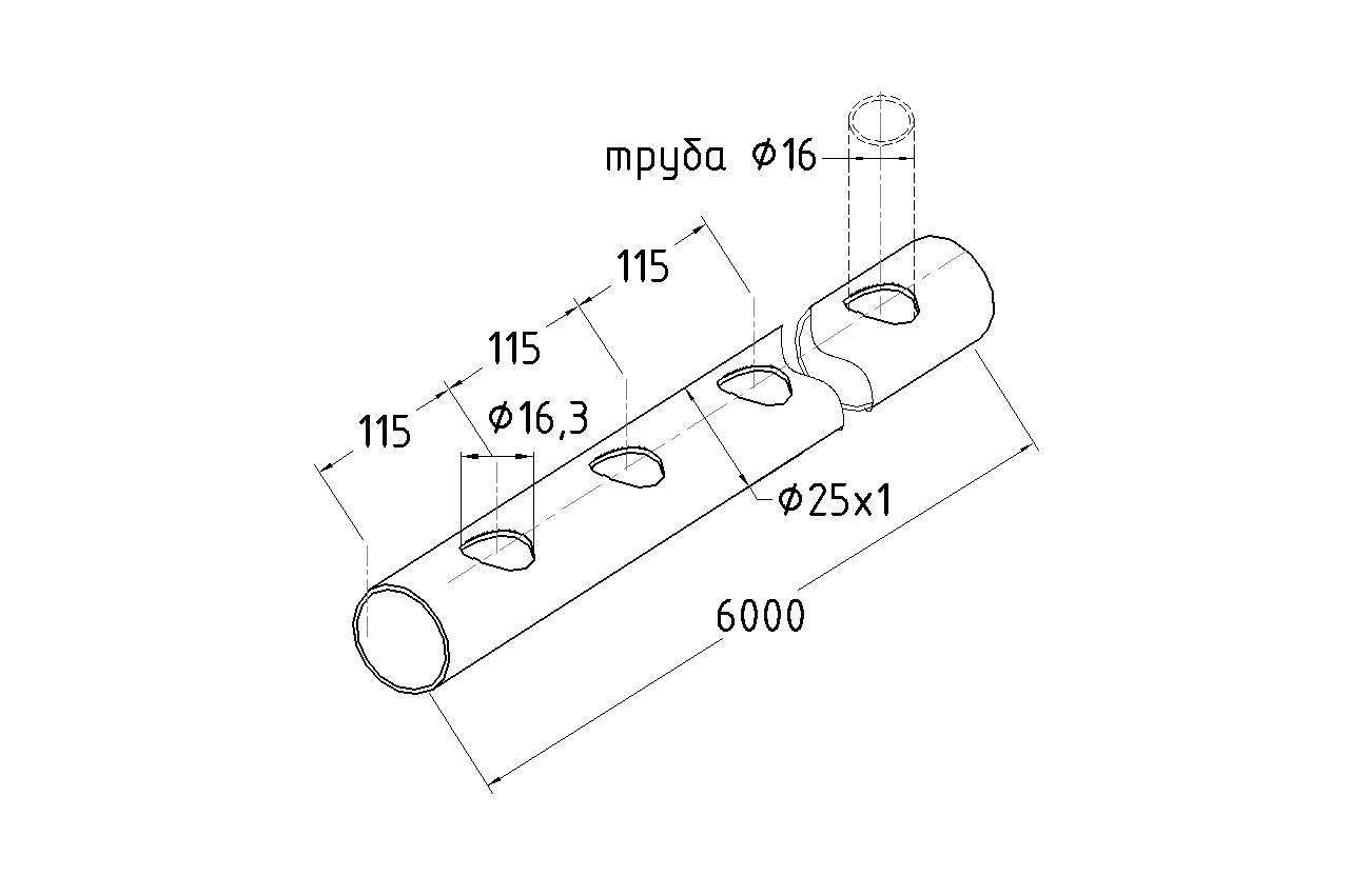 Труба AISI 201 25х1х6000, с перфорацией под  Ø16, 30°, GRIT 600 831-5 купить в Новосибирске