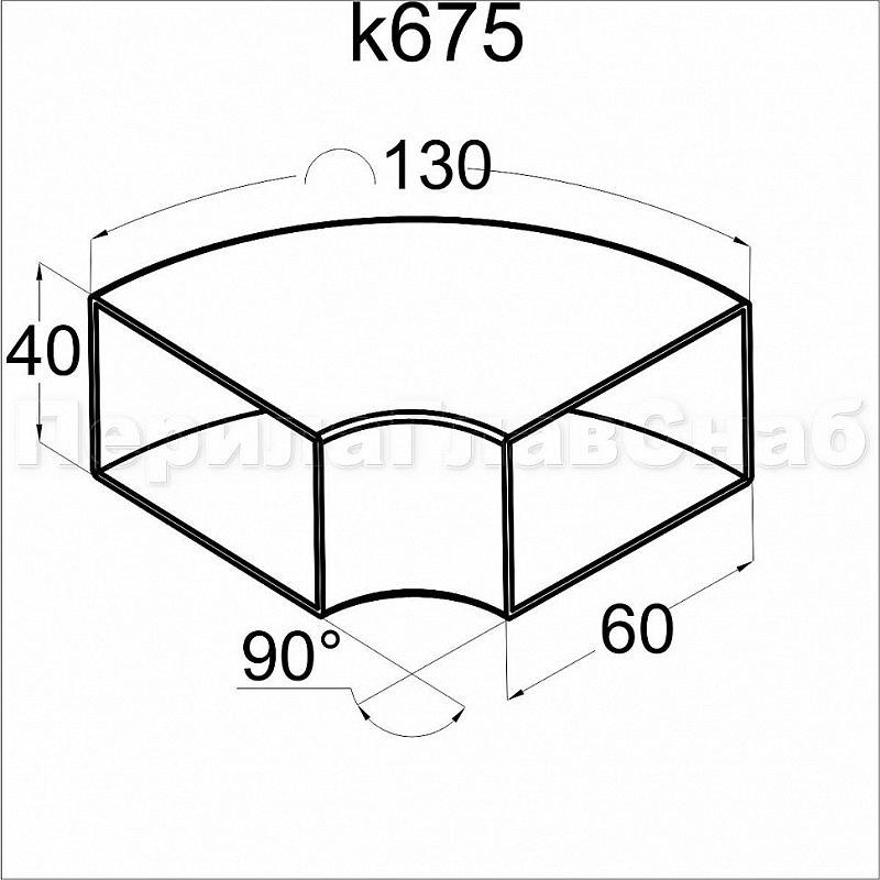 Отвод поручня под сварку 60х40х130x1.5 90°, полированный 600 Grit (AISI 304) k675