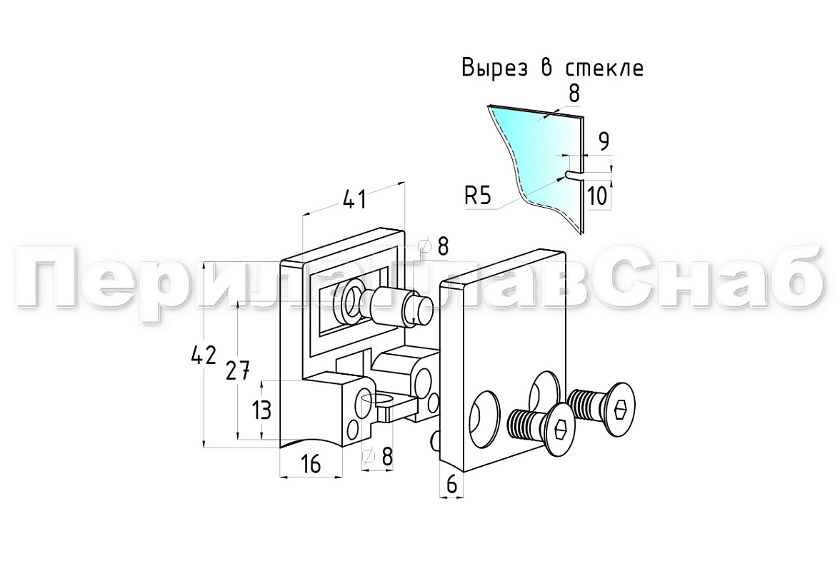k004-10 стеклодержатель литой под стекло 8-10 мм, 4+4 мм. На плоскость 41х22х42, полированный (AISI 304)