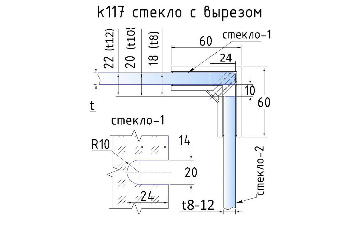 для соединения стекол между собой под углом 90 гр. в ограждениях, перегородках