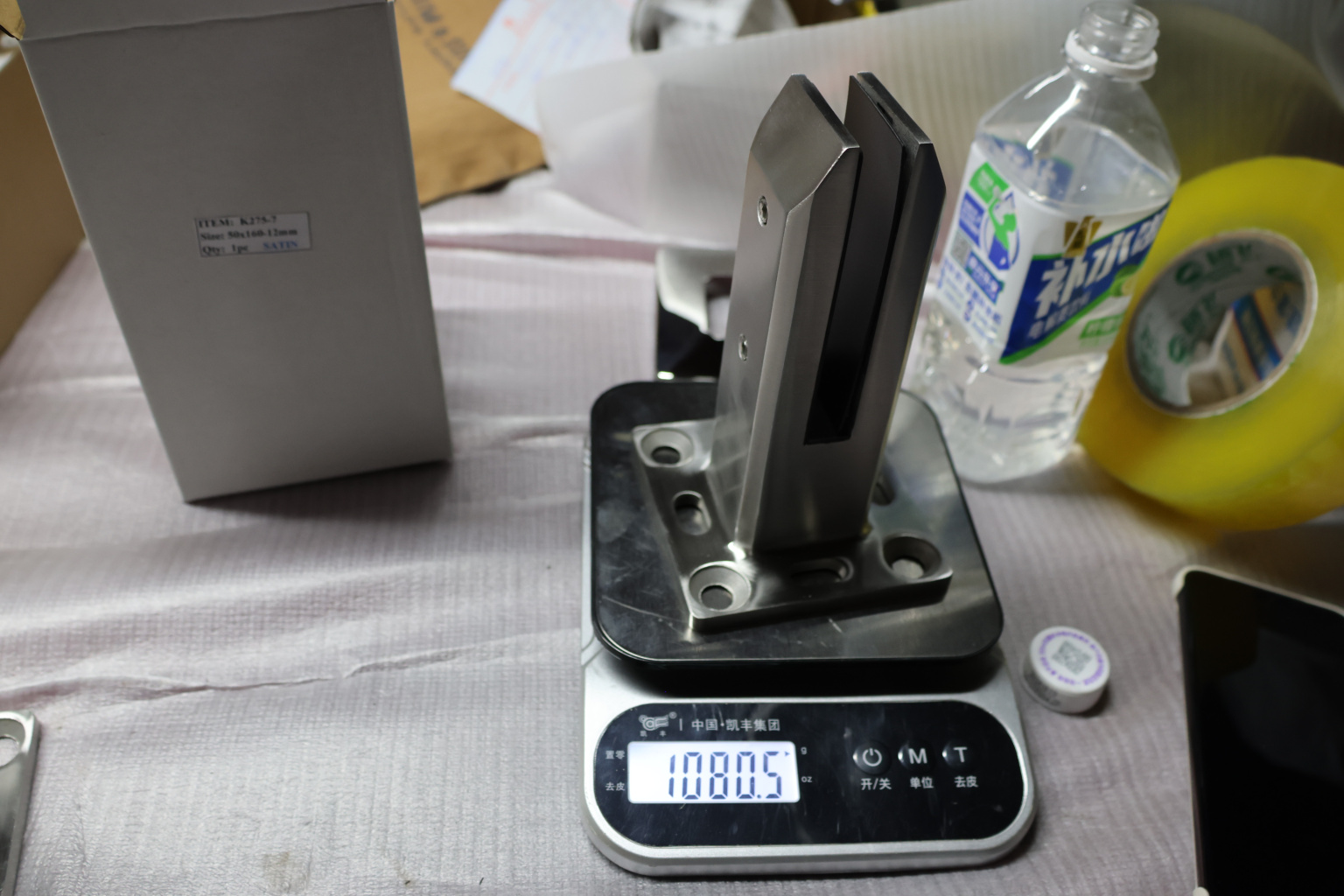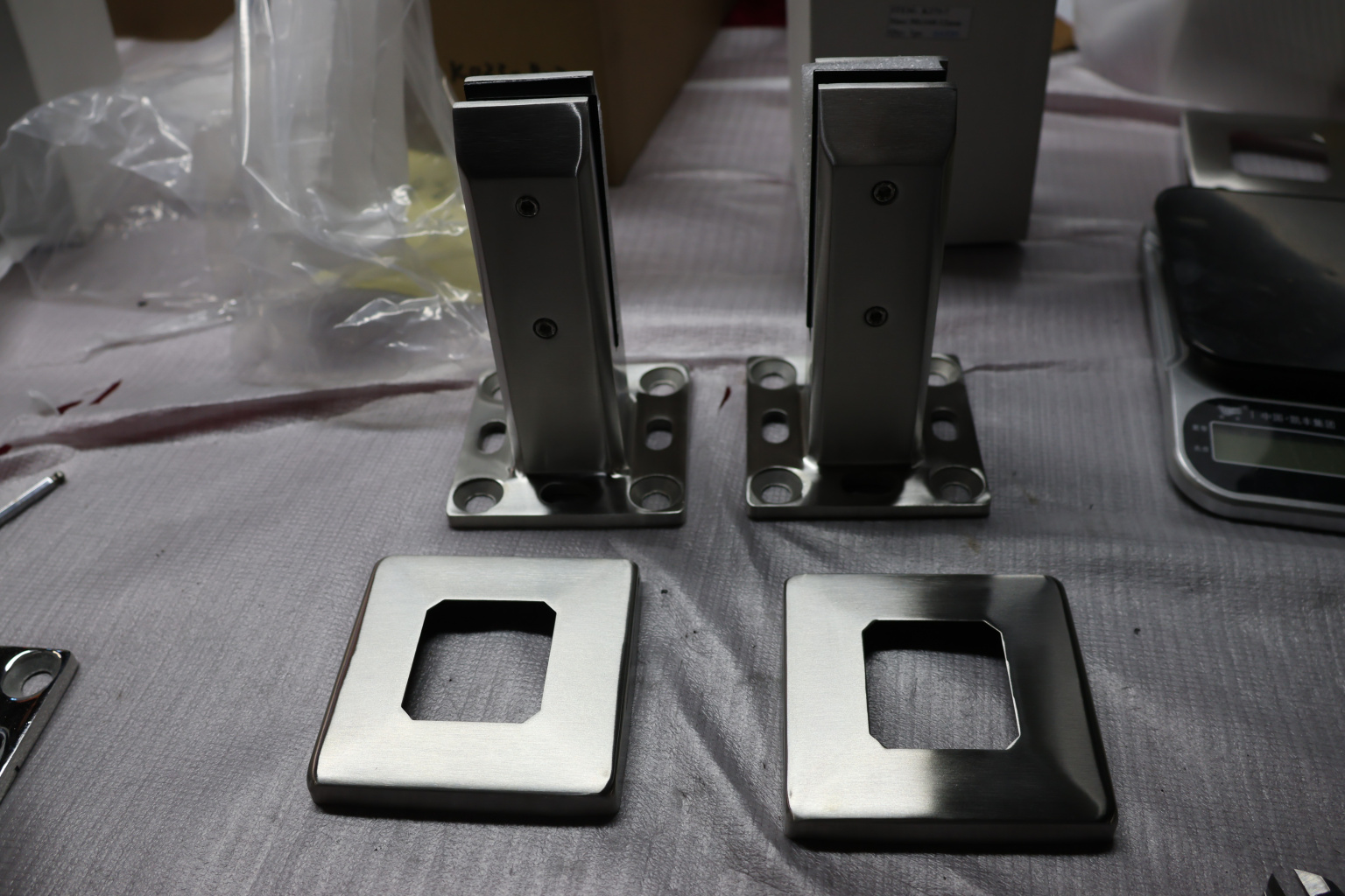 Стеклодержатель напольный 45х50х160 мм, литой, плоский, для стекла 10-12 мм, без сверления, нержавеющая сталь AISI 304, шлифованная k275-7