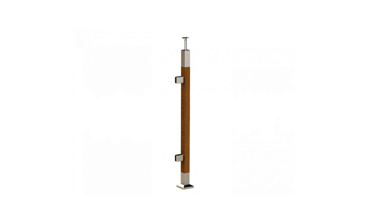 Готовая стойка 40х40х950 мм, деревянная, со вставками из нержавеющей стали 2х100 мм с 2 зажимными стеклодержателями k740-4-R купить в Новосибирске