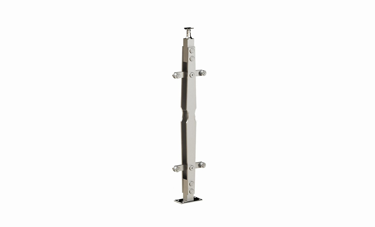 Стойка квадратная 40х40: 4 литых стеклодержателя, полированная, высота 950 мм (AISI 304) k746 купить в Новосибирске