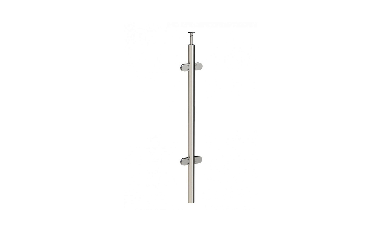 Стойка круглая Ø38.1: 2 штамп. зажимных стеклодержателя, полированная, высота 950 мм (AISI 201) k726-R