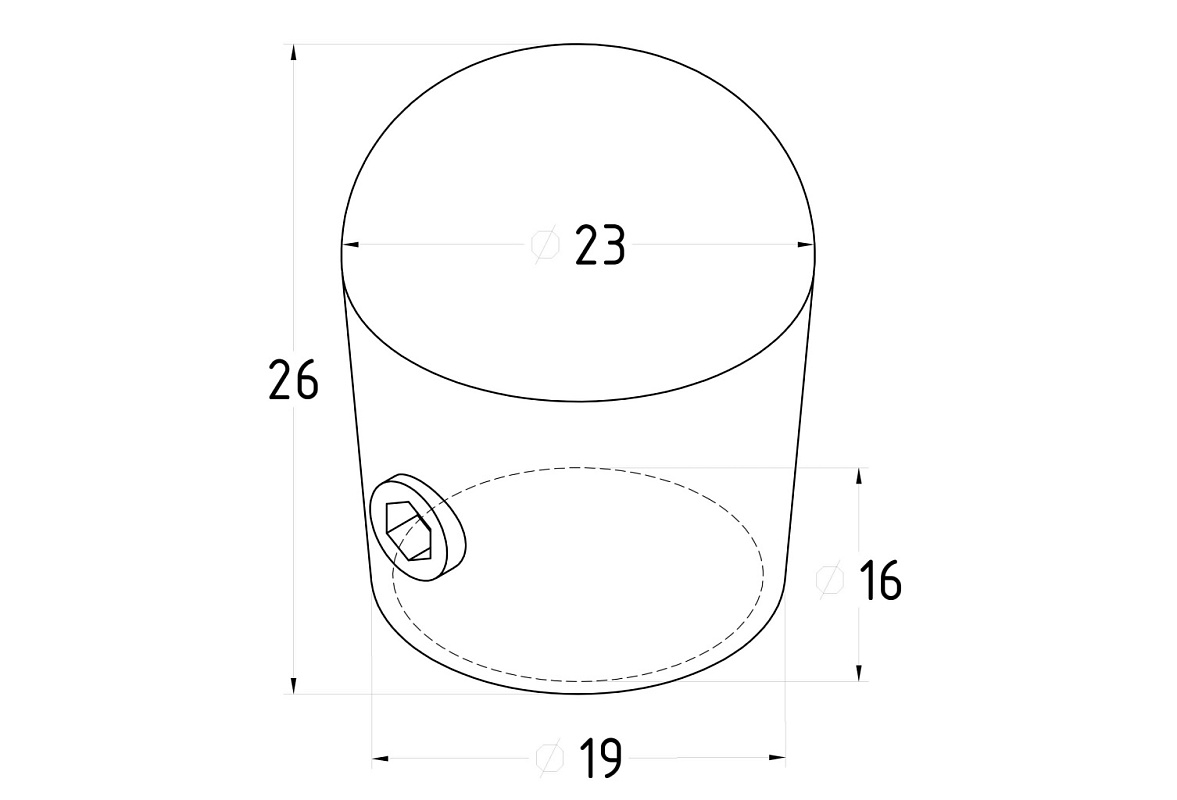 Заглушка под Ø16 мм, "капля", полированная, марка стали - AISI 304