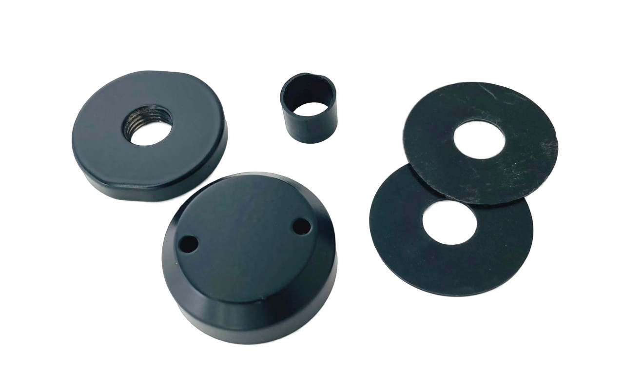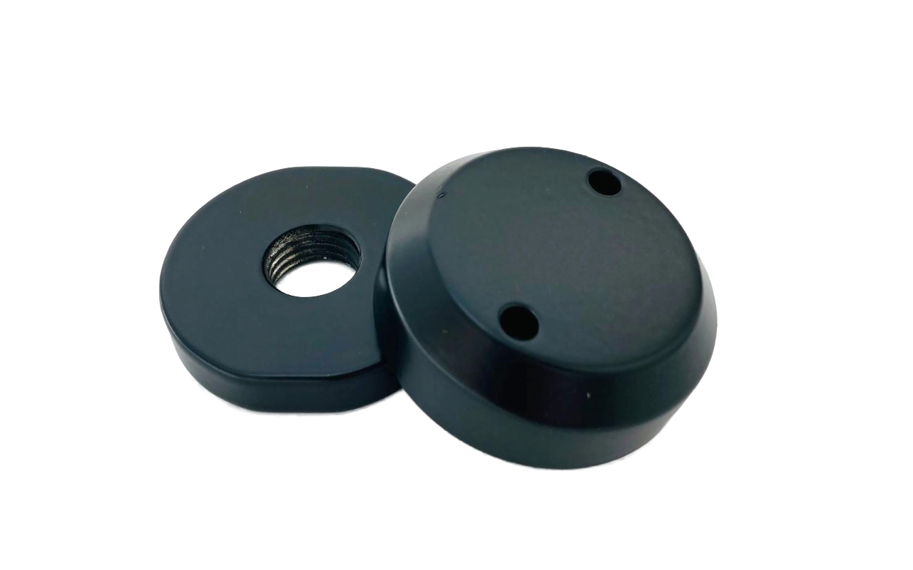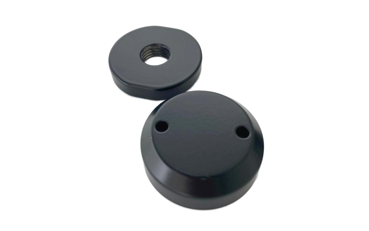 Наличие внутренней резьбы М16, что обеспечивает надёжное крепление несущего стекла. Комплект также включает гайку и шайбу, подходящие для использования с диаметром Ø50х10х18 мм. Порошковая покраска в цвете RAL 9005 мат придаёт комплекту эстетичный и защищённый от внешних воздействий вид. Материал изготовления — нержавеющая сталь AISI 304.