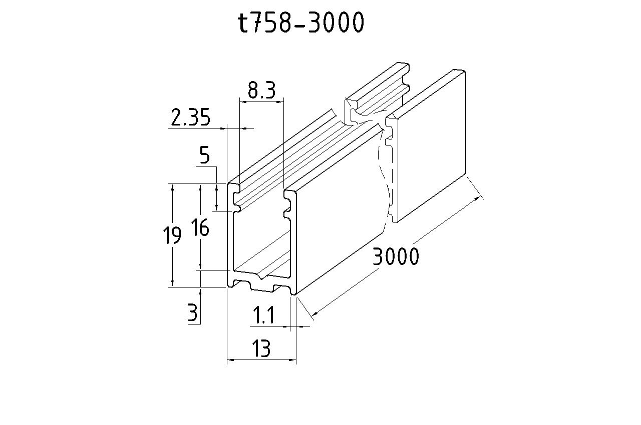 П-образный профиль 19x13, L=3000, под стекло 8 мм, алюминий полированный t758-3000 AL