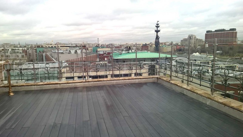 Ограждение с деревянным поручнем с зажимными стеклодержателями и стойками