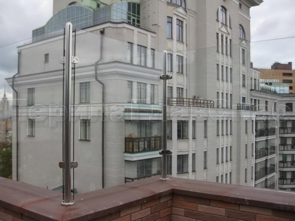 Ограждения лестницы без поручня с зажимными стеклодержателями и стойками