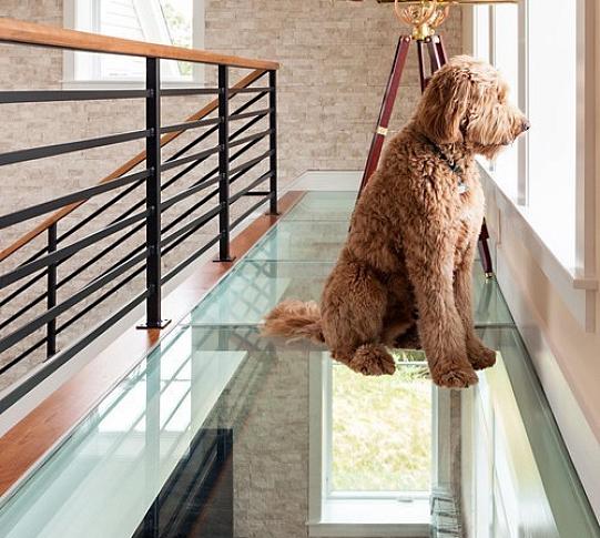 Стеклянное перекрытие из матового стекла на внутреннем балконе