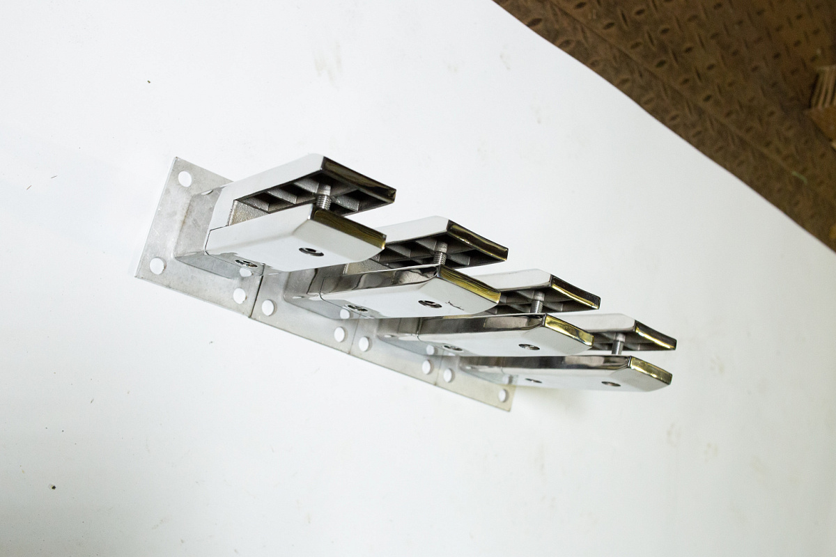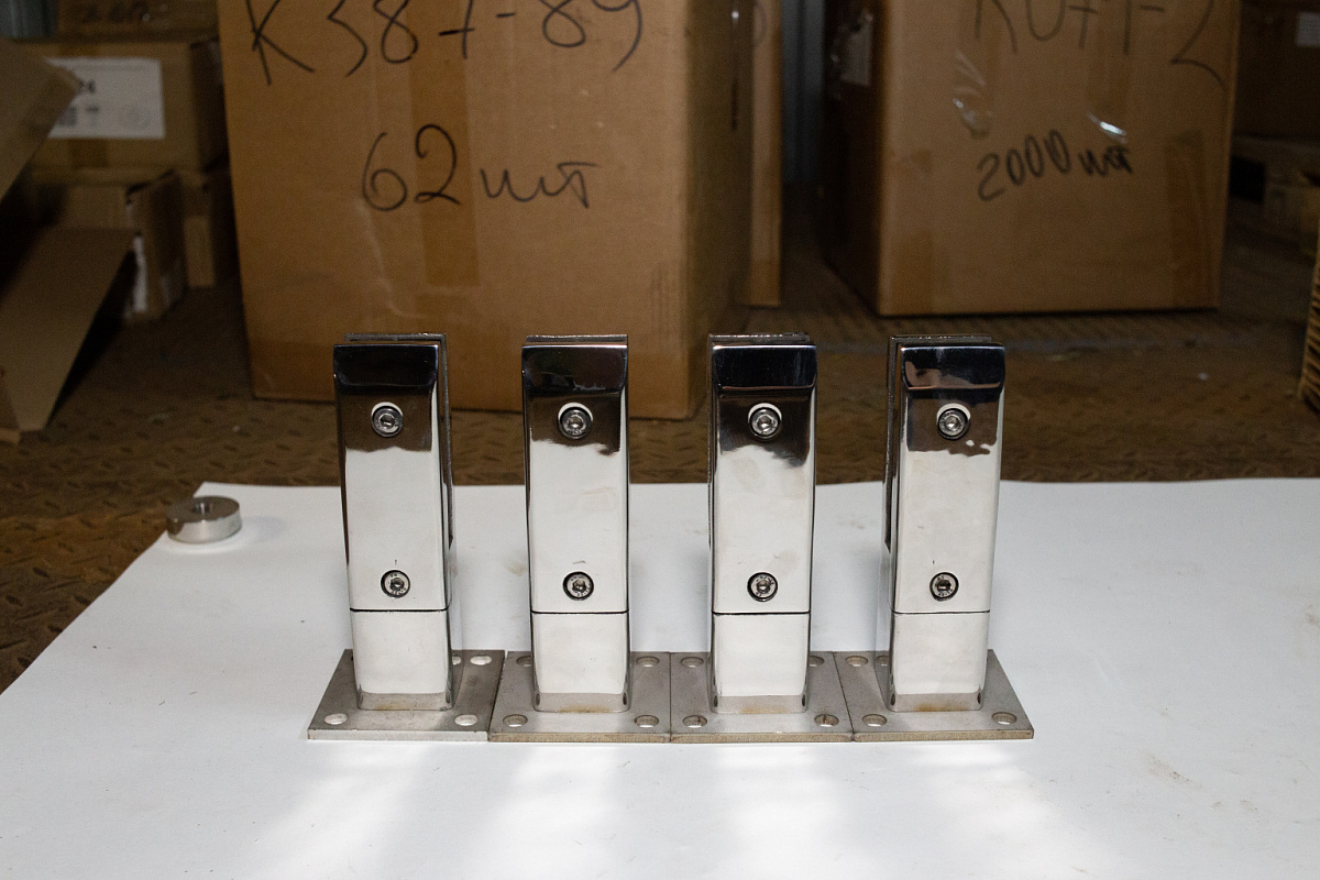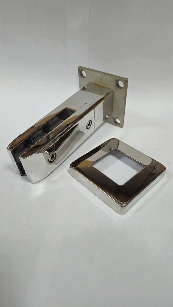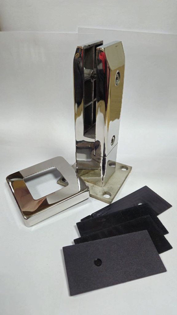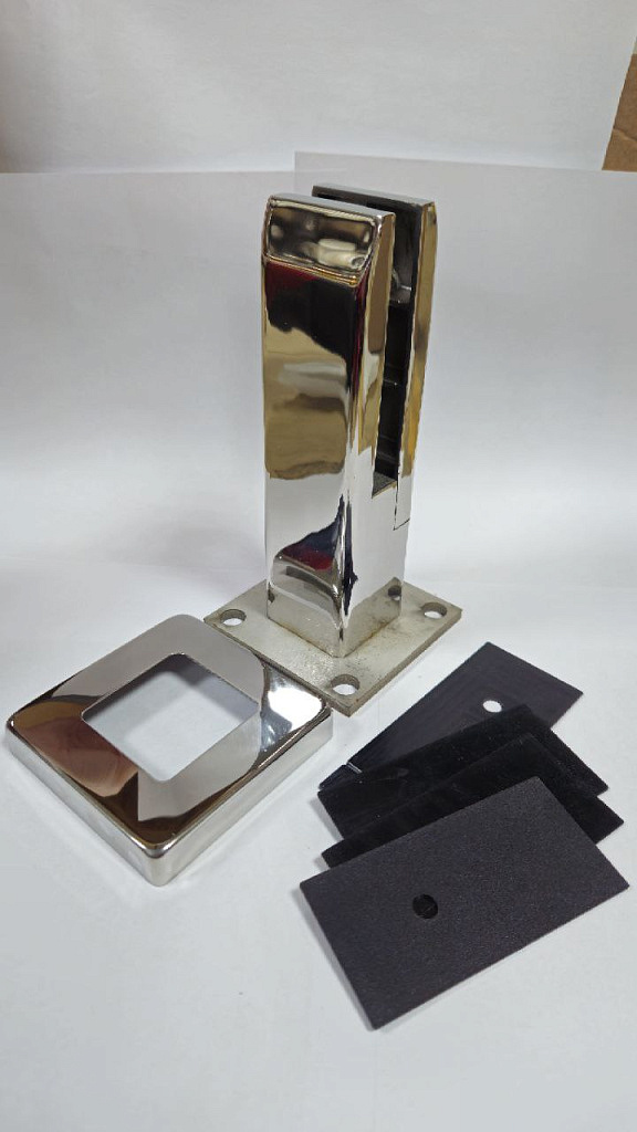 Стеклодержатель литой напольный, плоский 50х50х190 мм, для стекла 10-12 мм, полированный AISI 304, уценненый.